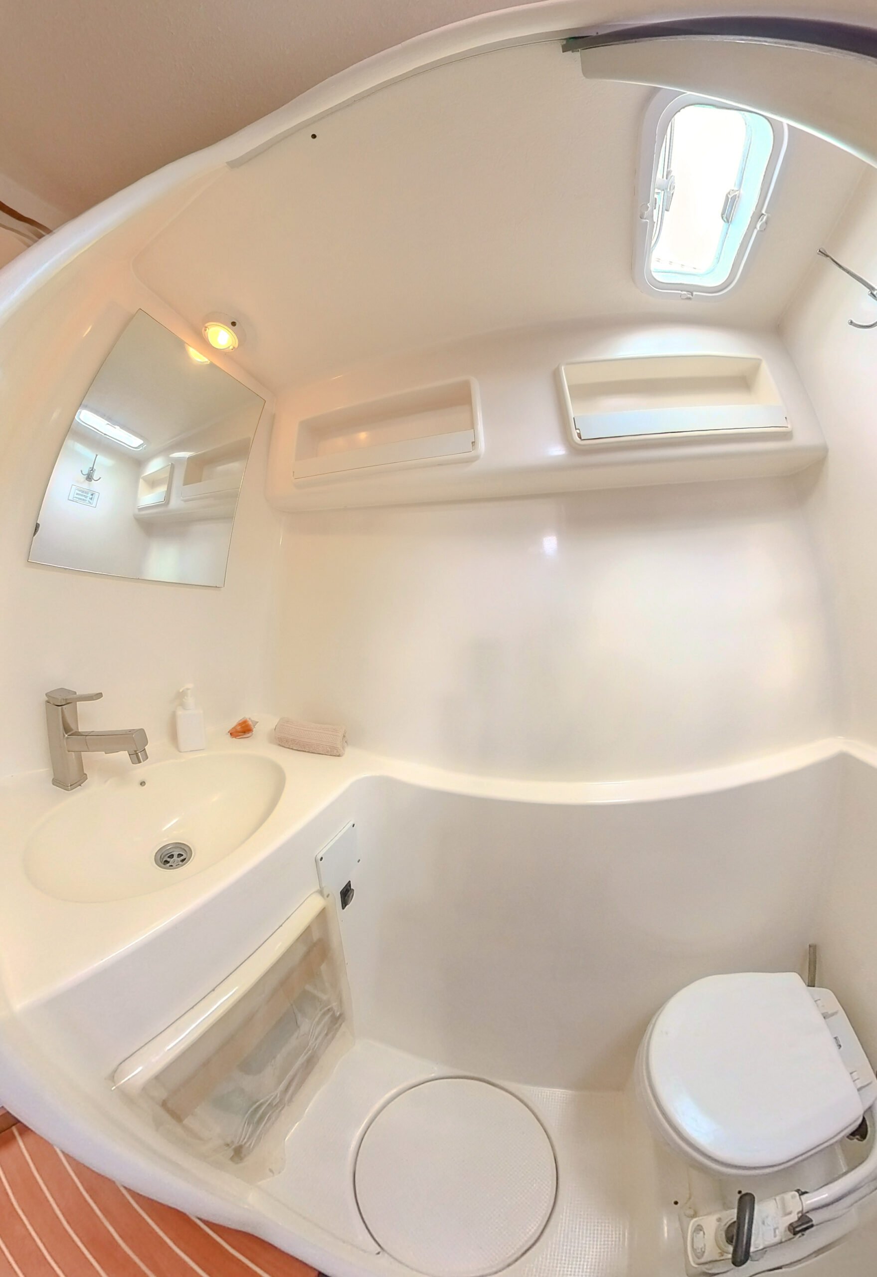 Bathrooms: The vessel includes 2 full shared bathrooms for all guests.